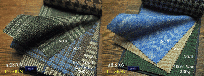 | 「秋の空のような時のうつろいを情緒豊かに描写したデザインが映える「アリストン・オーダージャケットコレクション「ジュリエット」。「アリストン」「ラグジュアリージャケットコレクション」英国の詩人であり劇作家であるシェークスピアの戯曲の一つ「ロミオとジュリエット」を題名にしたのは「アリストン」にとっていかにロマンチックなバンチブック。その中の一つ「ジュリエット」は表情豊かなジャケットコレクションの数々。“魂を揺さぶられるような”メリノウールに高級獣毛であるアルパカ、シルク、カシミヤをふんだんに使った究極の贅沢なジャケッティングコレクションです。イタリーらしく綺麗なカラーの杢糸を使用し複雑に織り上げたブークレ、サキソニー、ファブリックは世界中探しても見当たらないほどの最上級コレクション。夢のようなロマンチックでデリシャスな秋冬用ツイードジャケットコレクション。軽くて暖かく肌触りもよく、綺麗なジャケットは誰からも羨望のまなざしで注目されること間違いないです。 |