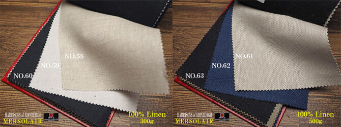 | 「ハリソンズオブエジンバラ」のオリジナル商品。リネンにモヘアをブレンド。肌触りが滑らかで独特の光沢を持った、最もラグジュアリーなモヘア・リネン素材。ジャケットだけでなくセットアップでリネンスーツに最適です。 |