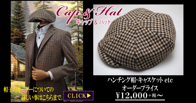 アメリカ東部に実在した狩猟倶楽部のひとつが1874年に作ったユニフォームに、このパターンを使用したことからがその名前になったそうです。「ガンクラブチェック」はスポーティーなパターンの代表格で、二色の格子が重なり合って出来ているのが特徴で、またの名を二重弁慶格子とも言います。ガンクラブチェックですから、カントリージャケットとしてお仕立てしても良し、スポーツジャケットでもいいですし、ノーフォークジャケット、その他スポーティーなトップコート。変わったところで、ニッカーやディアストーカーまたの名をハンチング・キャップ(鹿狩帽)など、伝統的なものに使われると素晴らしい効果と発揮いたします。 |
