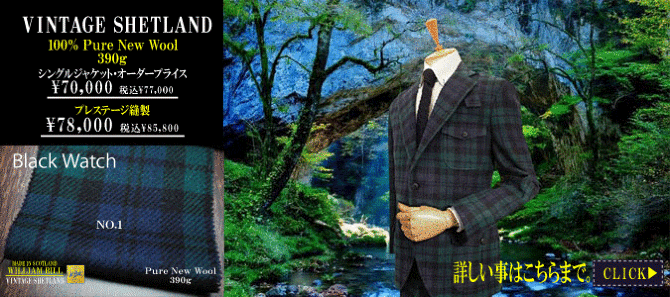 | 「シェットランドツイード」に使用される羊毛は「スコットランドの北の海岸に点在するシェットランド島に住んでいる羊。シェットランド種の羊は、他の羊に比べて非常に強壮である。 寒風の吹きすさぶ北海の荒波にもまれるこの島の冬は特に冷たい。羊は農家の附近の丘に乾草を主食とし、海辺に打ちあげられた海藻を主食として棲んでいる羊。この光景、孤島が一面の雪景色である中に、海辺に打ちあげられた海藻を食べている羊のありさまをこの島に訪れた旅行者が見れば、思わず目を瞠るであろうと、あるスコットランドのシェットランドの案内書などに書かれてある。 「シェットランド羊毛」は、ツイードの中で一番繊度が極めて柔軟でありスポンジのようにアルパカににたふっくらとした風合いで肌に優しい。それは冬季の寒冷と湿度の高い気候といった気象の関係と、乾草や海藻を食料とする影響であろうと云われている。ころがこの羊を緑の牧草で飼育すると、その品質は直ちに失われて繊度の太い毛となり、いままで何回かスコットランド以外に移棲させようと試みられたが、いずれも失敗に終わっている。シェットランド羊毛の大部分はメリヤス製品に向けられていていて、極く僅かなものが「ツイードジャケット用」に使用されるのであるから、シェットランドの「ツイードジャケット」を持つということは非常に贅沢なこととされている。 この羊毛で織られたツイードは軽やかで、温かく、頗る柔軟であり、掴んだ場合の豊かな感触は何とも云えない。 「シェットランドツイード」は手織工場で今なお行われており200年以上も続いている。ふっくらとしたスポンジのような肌ざわりの「シェットランドツイード」でオーダージャケットを仕立てる。それは一番の贅沢な一着になる。 |