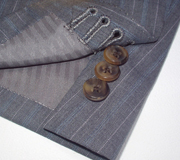 イタリアの職人(サルト)が手間をかけたように作り上げる袖の切羽、糸のクロス掛け重ね (キッス)ボタンは、イタリア仕立ての真骨頂。 |